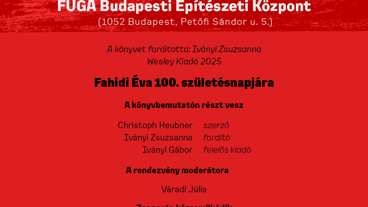 A kötetet október 30-án 11:00 órakor mutatjuk be a FÚGA- Építészeti Központban a szerző, Christoph Heubner, a fordító, Iványi Zsuzsa és a felelős kiadó, Iványi Gábor közreműködésével.